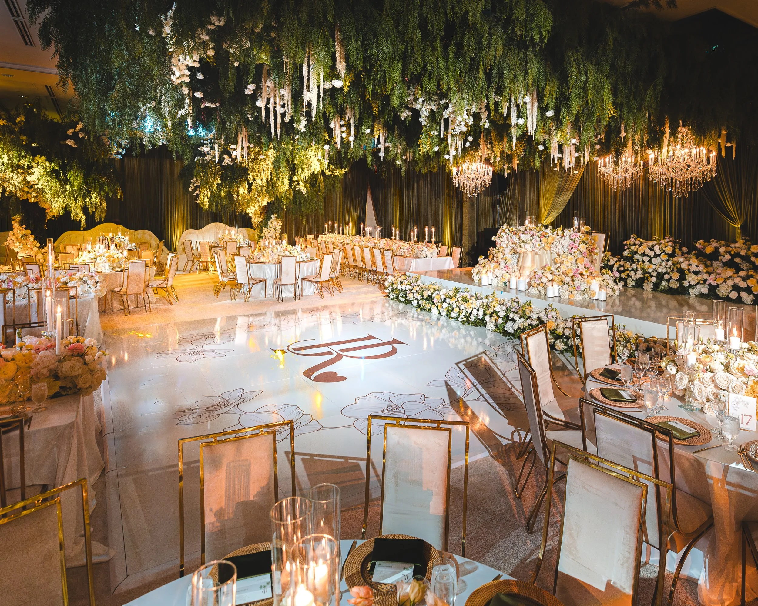 And here’s the thing — while the ballroom was breathtaking, the real magic was in the joy that filled it. Guests weren’t just impressed by the design (though, trust us, phones were out snapping photos all night). They were fully immersed in the love story unfolding around them. Laughter carried through the room, hugs lasted a little longer, and every toast felt heartfelt and personal. Then the dancing got started — and it never stopped! Especially after re-energizing with a good helping of In N Out burgers!