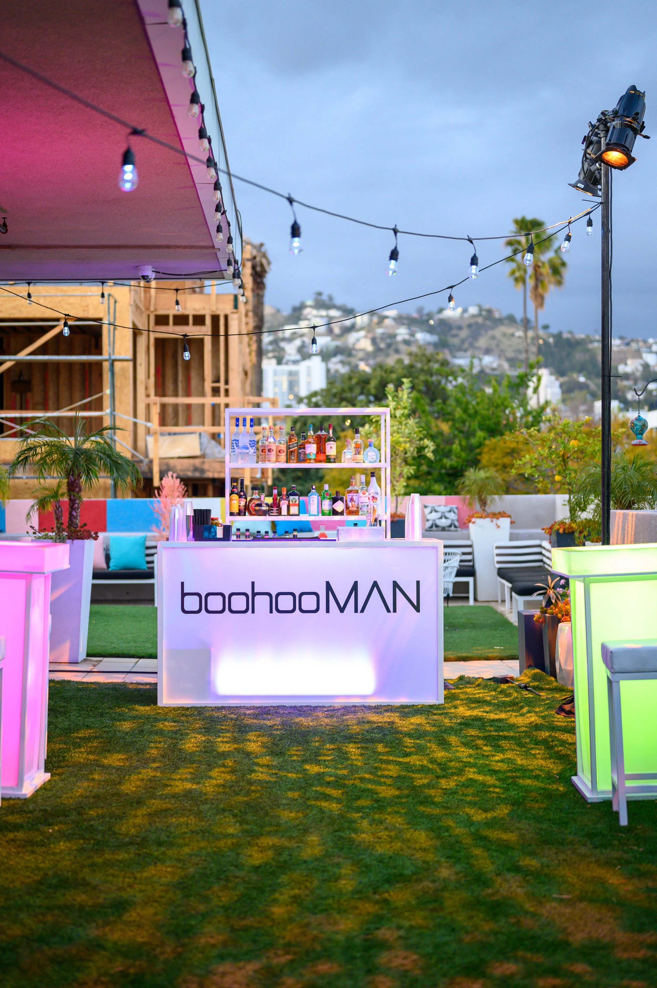 To celebrate the release of the new BoohooMAN collection, we collaborated with their in-house team to produce an evening cocktail hour at the Boohoo showroom that would be extra memorable! We were inspired by the color scheme of the collection itself, so we decided to utilize all of the fun tones in the décor concept.