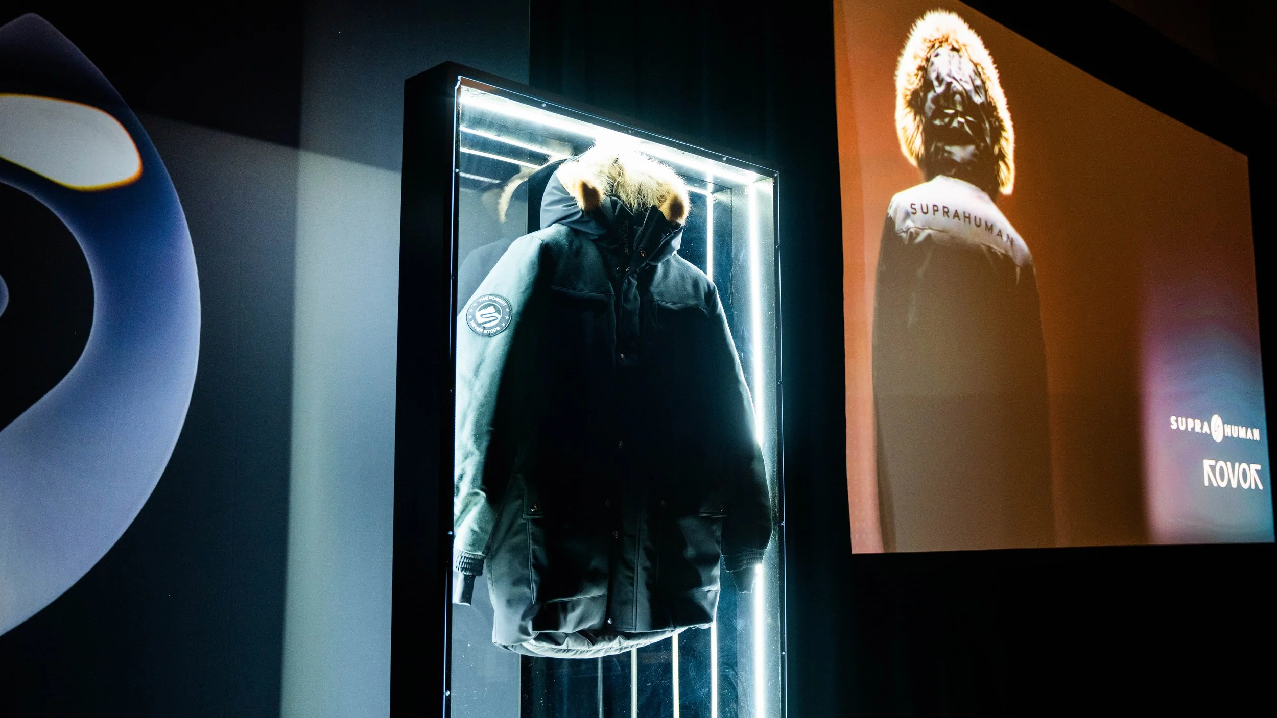 Inside the main event space, dramatic lighting and crisp staging highlighted one of the event’s focal points: a striking illuminated display case showcasing a signature Supra Human jacket. The presentation felt part museum exhibit, part luxury product reveal — reinforcing the brand’s identity as elite.