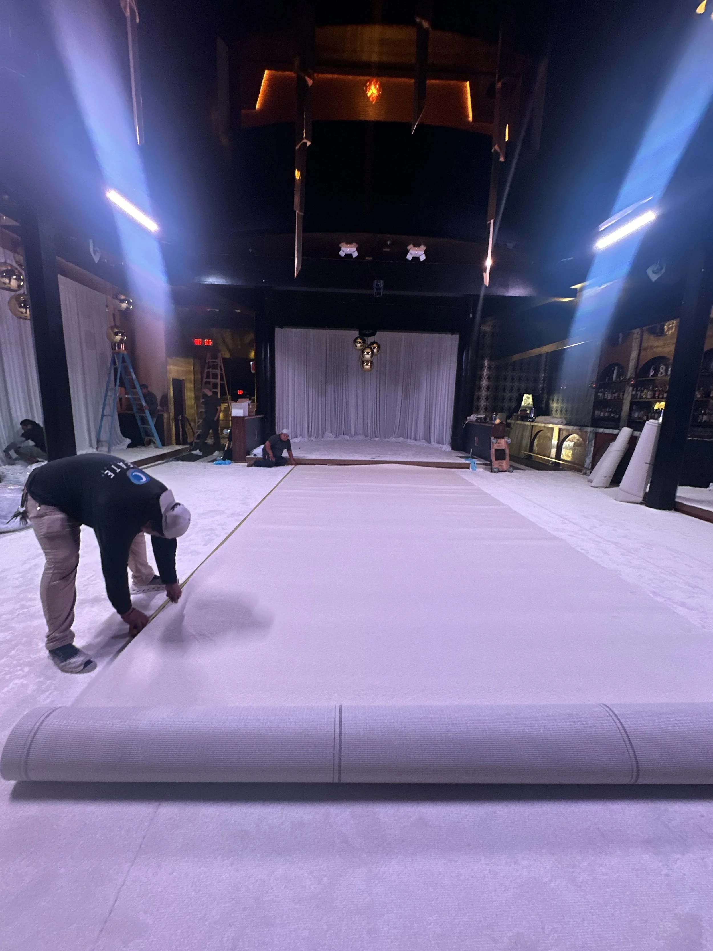 Every detail — from the carpet seams to the furniture placement to the lighting design — was designed to feel modern and cool (like Breezy himself!), though it required extensive coordination, overnight installs, and hands-on problem solving. This is where The Wife of the Party thrives: translating an artist’s world into a physical environment that feels polished and production-driven.