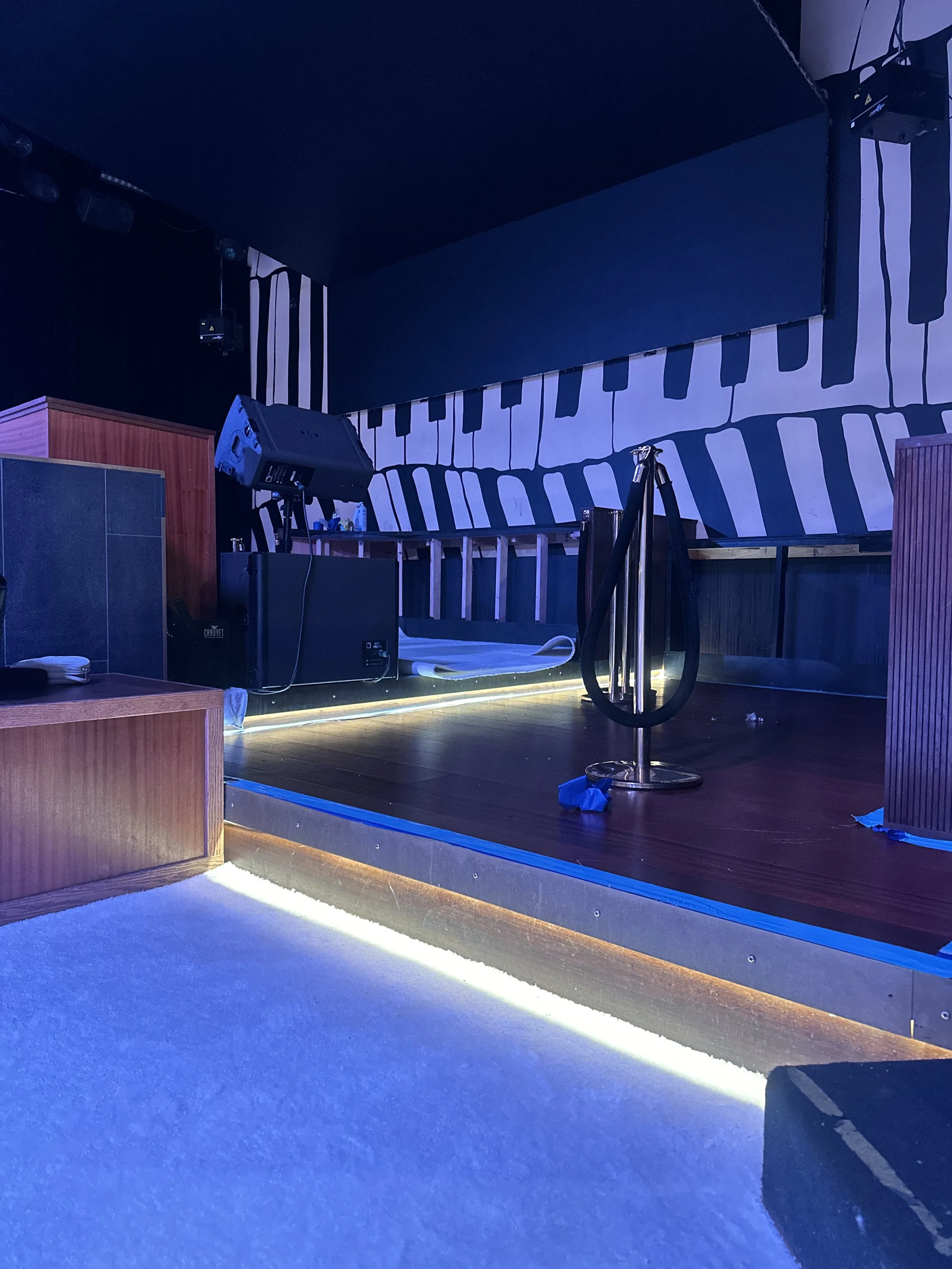 The venue began as a functional but unfinished shell. Exposed flooring, unlit architectural elements, and simple lounge furniture defined the space. The stage backdrop was bare, seating was unstyled, and the room lacked cohesion. From the ground up, the environment needed not just décor, but direction — and a layout focused on flow, texture, and lighting that would translate both in person and on camera.