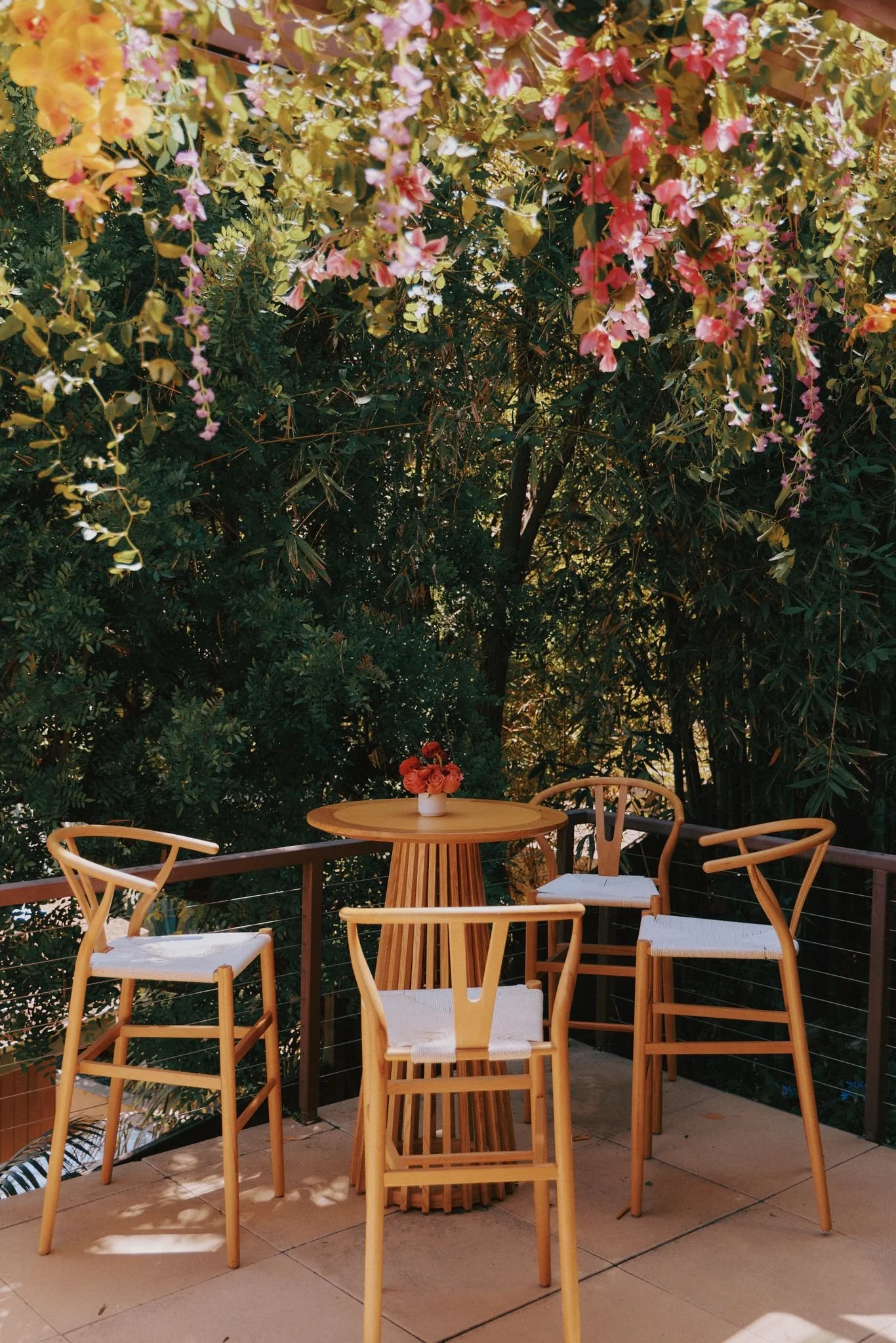 The environment was equally artful. Modern wood furnishings, cascading greenery, and bold tropical florals in shades of coral and deep red framed the scene, while glassware and cocktails added a chic, celebratory touch. The overall design encouraged guests to slow down, play, and connect — turning a birthday party into a space for freedom and healing.
