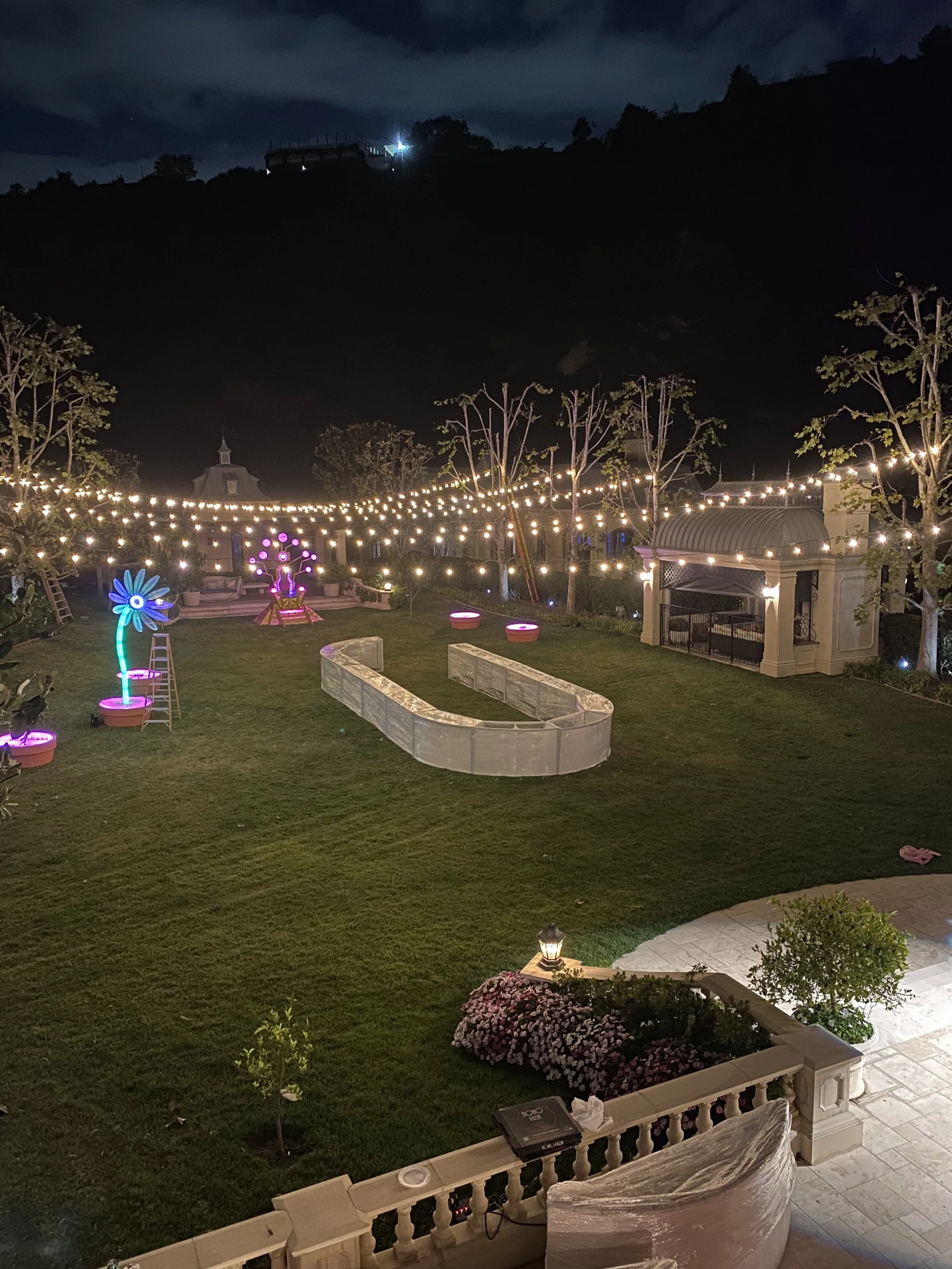 This wasn’t a setup that came together overnight. It took multiple teams working around the clock — lighting techs, riggers, florists, stylists, and producers — collaborating through long days (and even longer nights) and all orchestrated by Wife of the Party to make every glowing detail come to life.