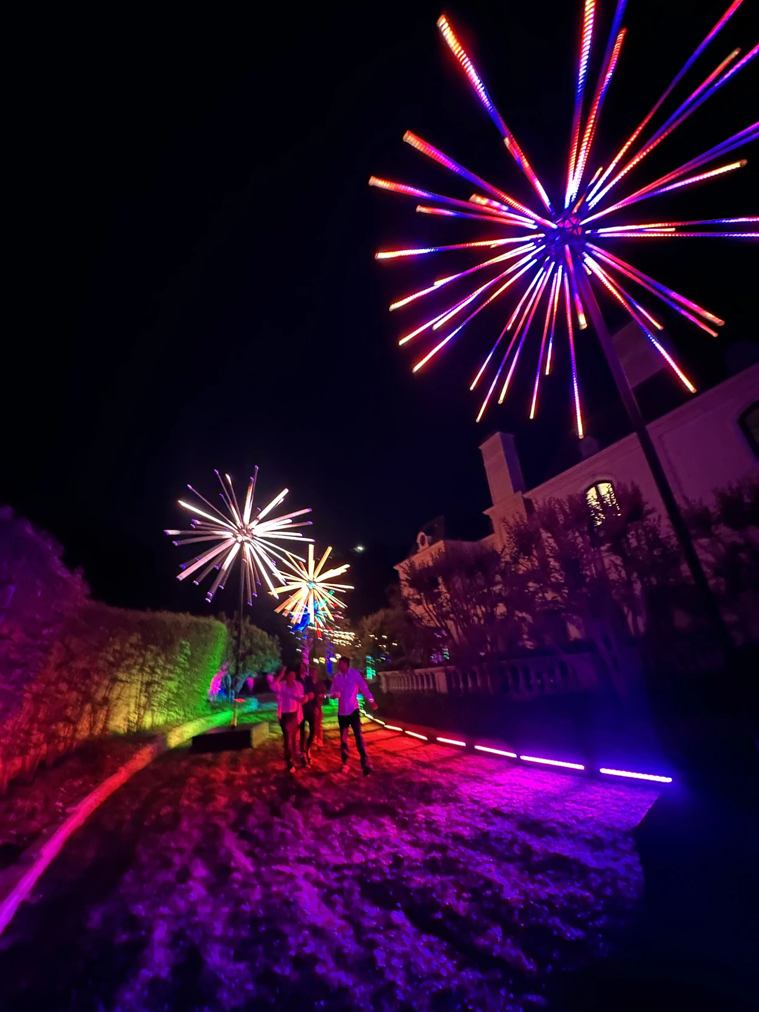 We engineered light paths, programmed color transitions, and tested every installation repeatedly to ensure flawless synchronization. Every element — from the placement of each sculpture to the alignment of the LED rods — was intentional. It was artistry on a massive scale, backed by meticulous coordination and endless dedication.