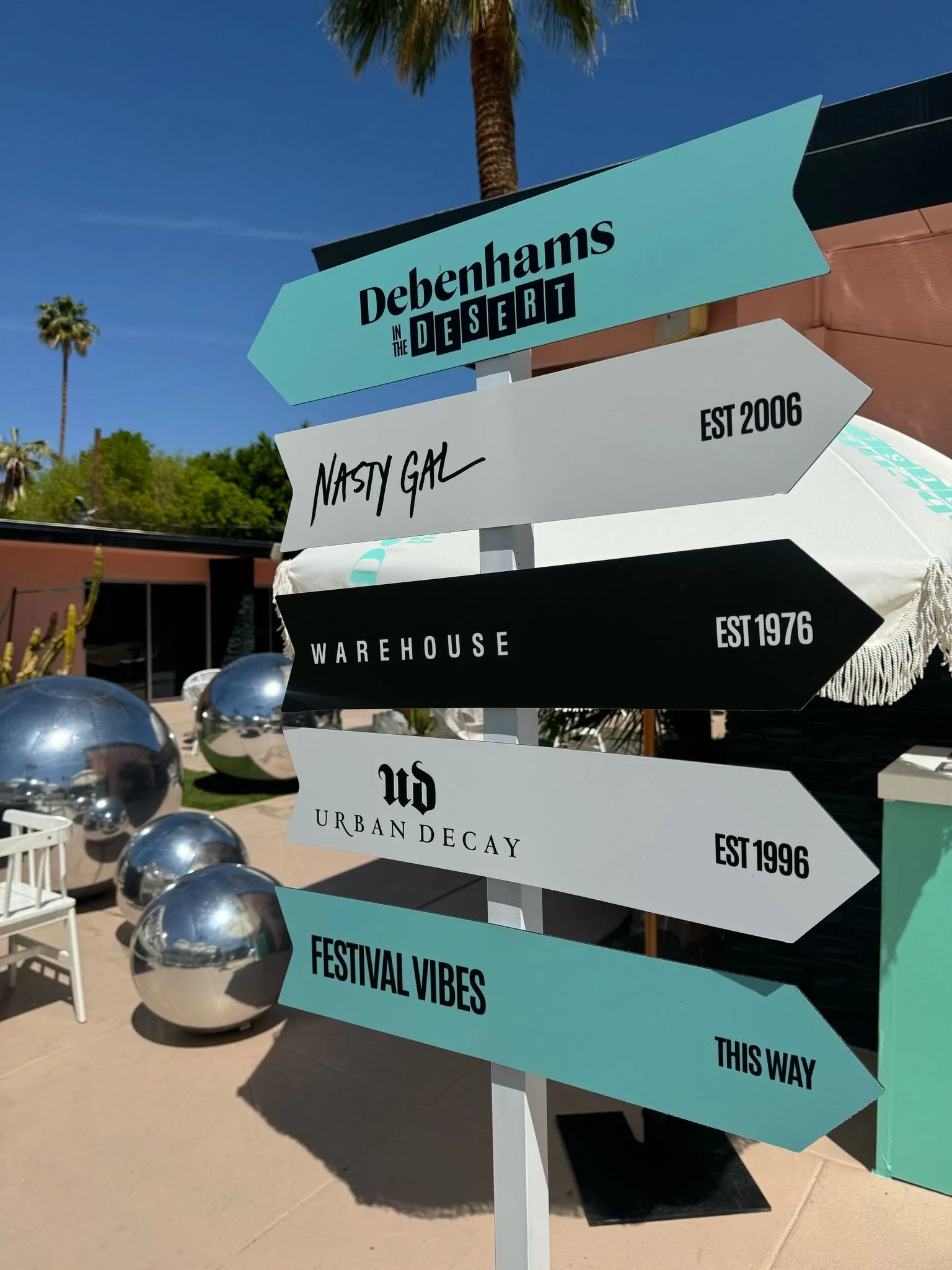 Cute arrowed signage guided guests to discover various corners of the experience, including the Debenhams pop-up shop featuring cult-favorite brands like Urban Decay, Nasty Gal, and Warehouse. Whether relaxing poolside or exploring activations, attendees were treated to a chic, immersive brand moment from every angle.