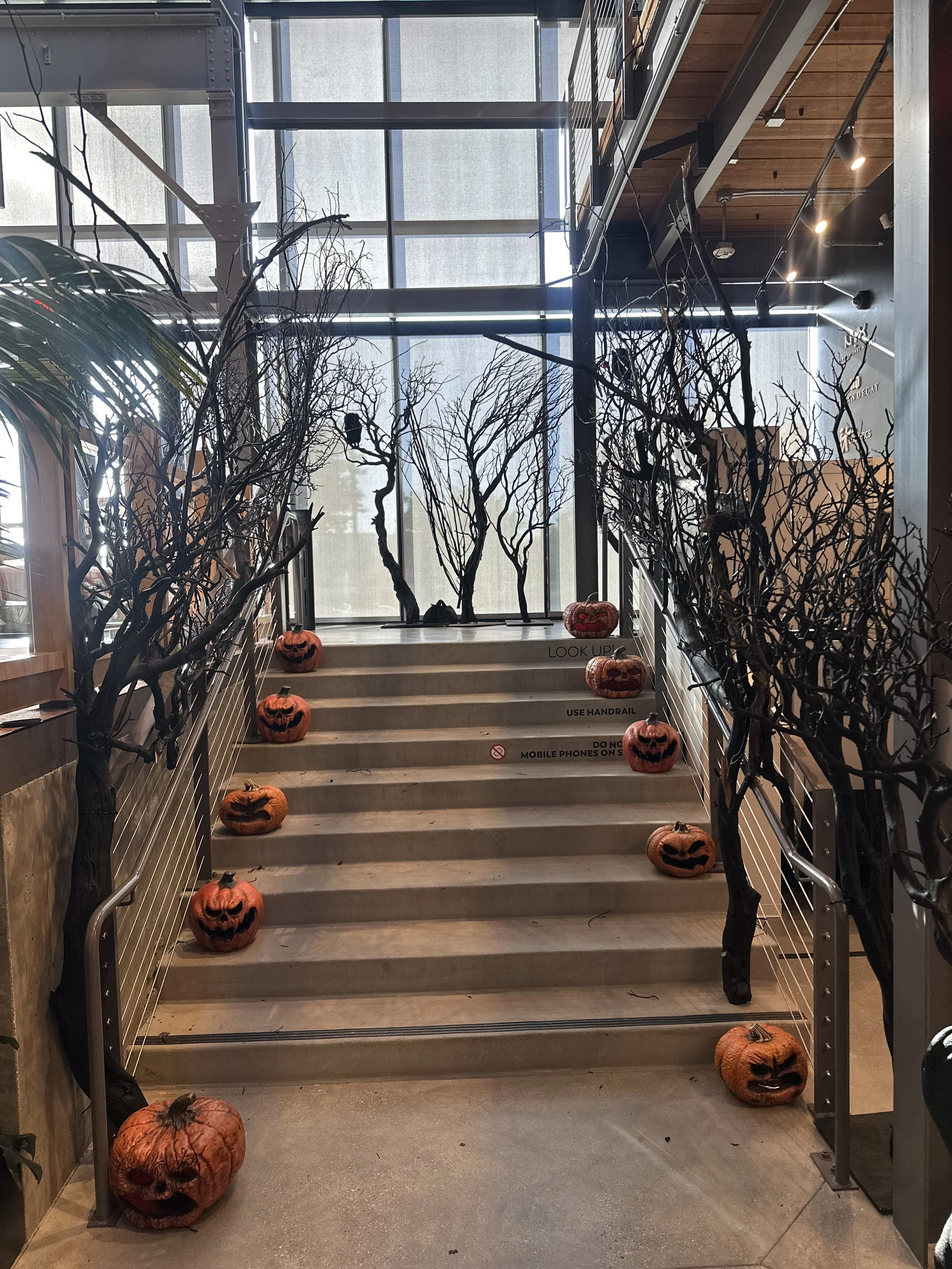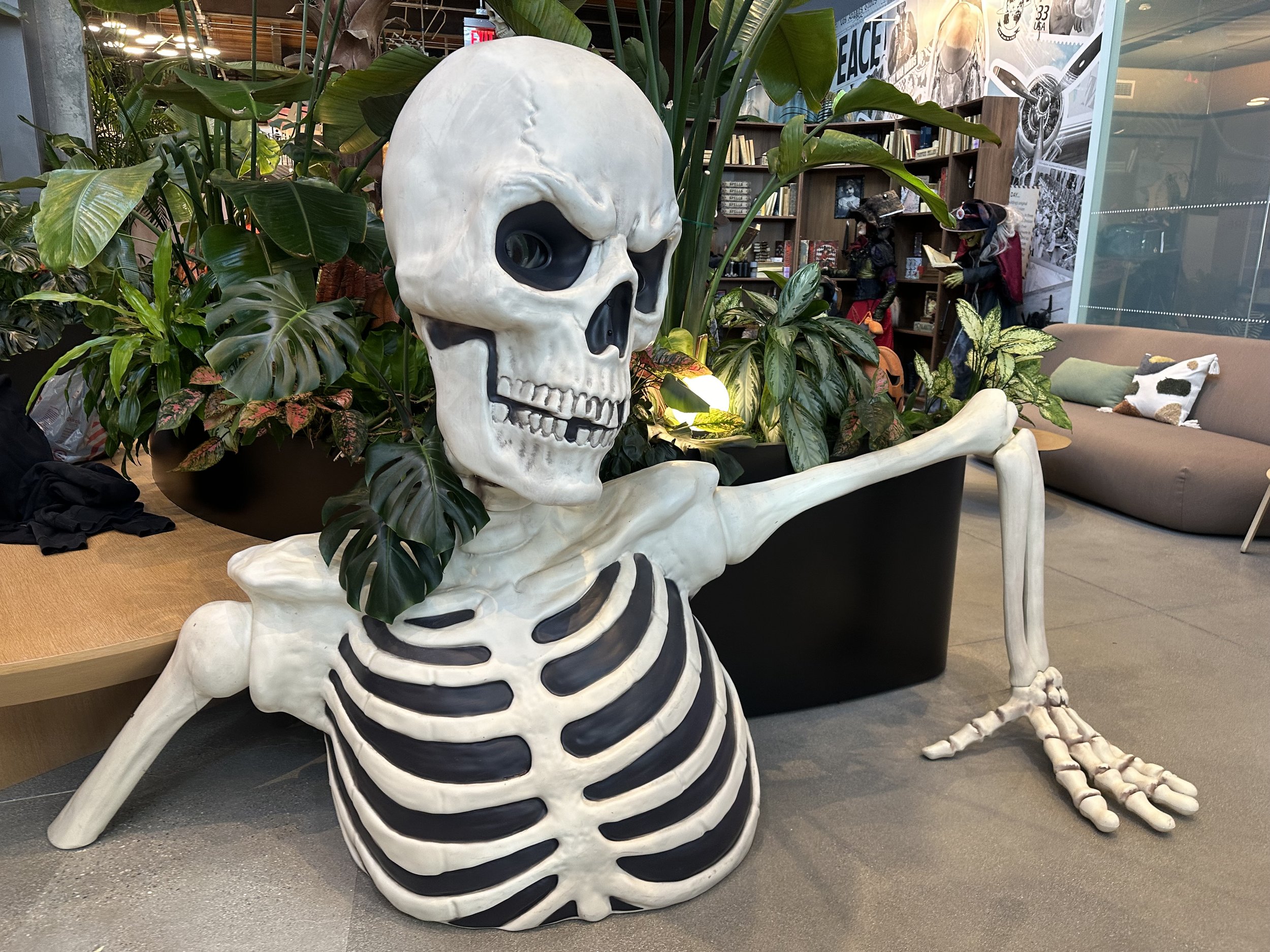 Behind the scenes, the process involved careful planning and collaboration. We assessed how employees and visitors move through the space, identifying key visual moments that would create delight without disrupting daily operations. Halloween décor doesn’t need to rely on clichés to make an impact. For this installation, our team focused on tonal depth, strategic lighting accents, and thoughtfully curated vignettes. The result was a seasonal transformation that felt elevated and modern — proof that festive moments can live comfortably within a corporate setting when executed with creativity.